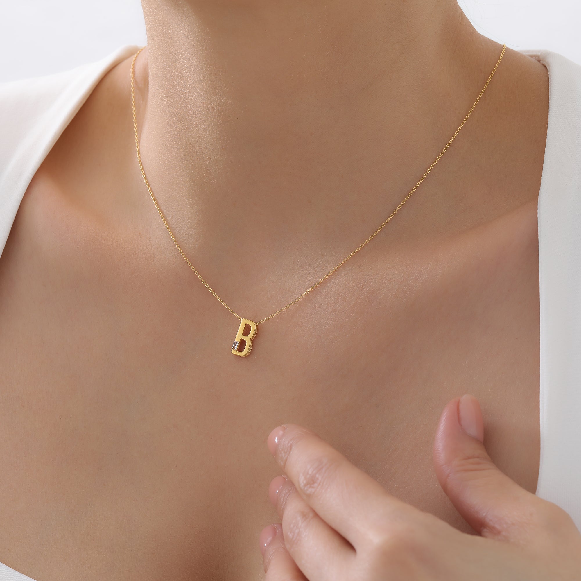 Dainty Initial Letter Necklace with Baguette Stone