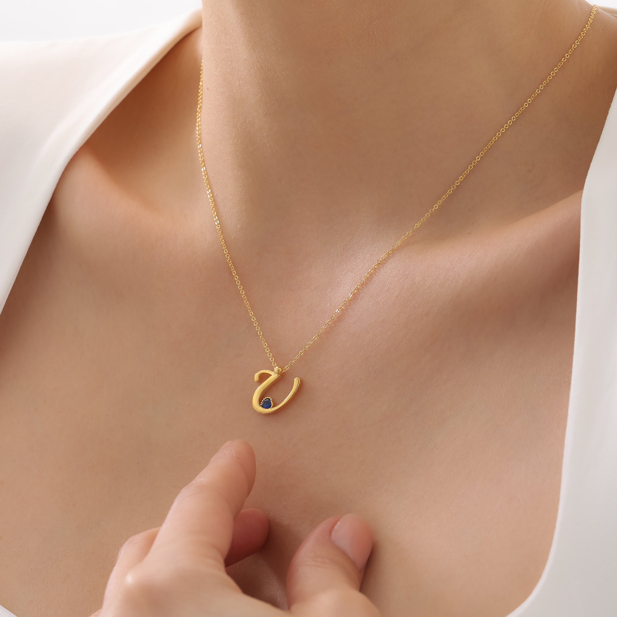 Script Letter Necklace with Birthstone